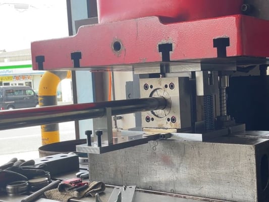 プレス機でパイプを加工する拡管金型の経験を元に、プレス機でパイプの直径を縮める加工を行う金型を設計製作しました。